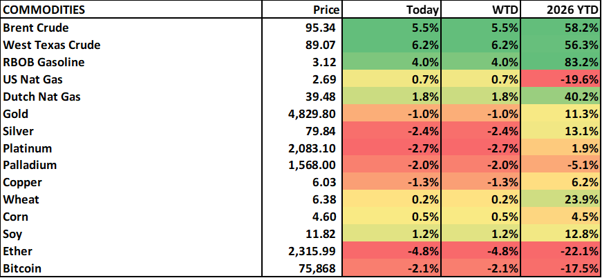 Brent crude is doing the Tom Petty, freefalling from already lower levels on the ceasefire news flow (Brent -10%). Precious metals are moving higher. Ag is lower. Roughly half of the US is drought conditions. Crypto is moving higher.