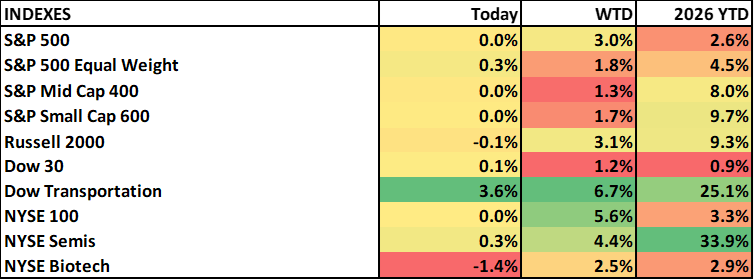 Tech continues to trade well with software continuing to bounce (IGV +1.5%). Taiwan Semi reported solid full results (revenues were already reported), bumped full-year revenue guidance to above 30% growth and said AI demand was extremely robust as the shift to agentic from chat catalyzes another step up in growth. The stock is the most recent in a growing list of tech companies to beat & raise and yet trade lower including ASML earlier this week.