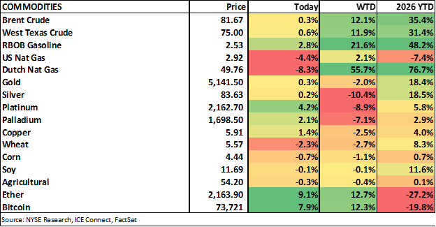 Commodities are mixed. The energy complex is pulling back. Metals are bouncing after sharp declines yesterday. Ag is giving back some of yesterday’s move higher. Crypto held up pretty well yesterday and is moving higher this morning helped by comments from President Trump who met with Coinbase CEO Brian Armstrong telling banks to stop “undermining” the Crypto Agenda. Bitcoin is up ~5% trading just under 72k the highest level since early February. Ethereum is up a similar amount.