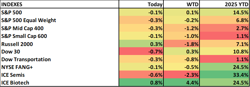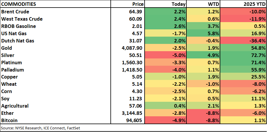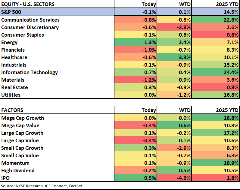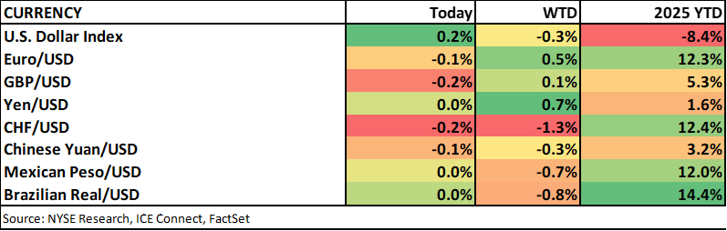SF Fed President Mary Daly wrote in a blog post that, despite a remarkably resilient US economy, the balance of risks has clearly shifted with rapid softening in the labor market. She noted that we’re likely experiencing a negative demand shock for labor that happens to coincide with falling supply of workers. On inflation, she discussed that tariff effects are largely confined to goods and not spilling over into services or raising expectations. Overall, she drew parallels to prior decades, “we don’t want to work so hard to not be in the 1970’s (reigniting inflation) that we cut off the possibility of the 1990’s (igniting growth).