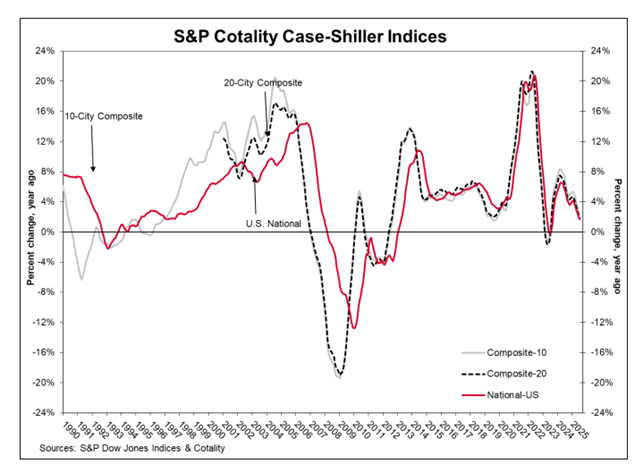 The survey data has a whiff of stagflation, but the Case Shiller Home prices provide an offset on the inflation side of the equation. Keep in mind this data is quite delayed. In July the national home price index continued to moderate up 1.7% on a y/y basis, tracking below overall inflation levels. The other recent housing data suggests a pick up in activity during August as yields moved lower so we’ll need to keep an eye on next month’s report.
