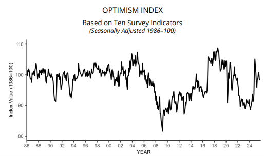 The NFIB Small Business survey declined in October. The Uncertainty Index fell to its lowest level since December 2024. Actual Earnings declined (last 3 months vs. prior three) but prices were relatively stable, as were employment metrics. Labor quality remains the biggest issue for employers and reached the highest level since November 2021.