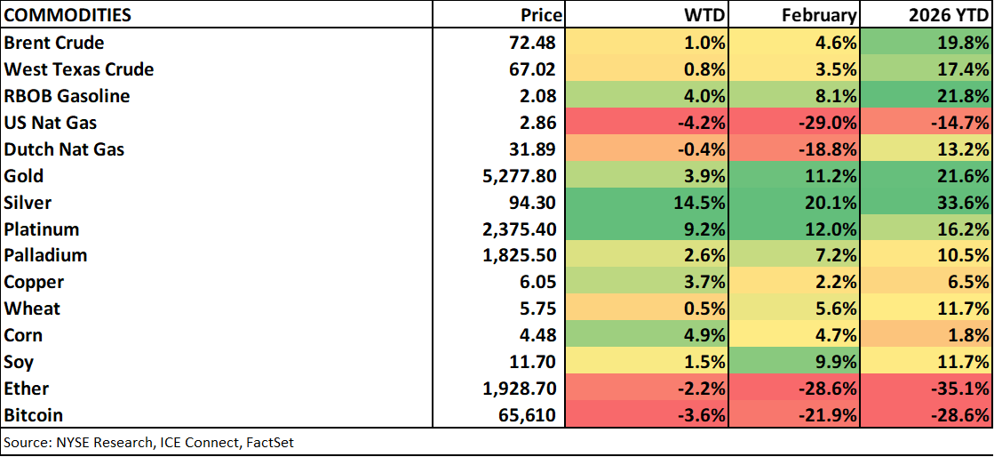 - Oil - ICE Brent has been moving higher throughout the month after finally breaking above its 200d ma at the end of January. Increased geopolitical risk has been the primary driver of the strength as we head into every weekend wondering if there will be another round of strikes on Iran.
