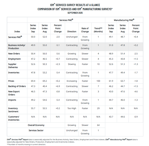 The government shutdown has left the MAC Desk feeling a bit void today. The first Friday of the month is always an important one for equity markets, with the release of the BLS employment report. Despite the fact that the report has drawn quite a bit of criticism recently and circularly caused the federal hiring line to be reduced by at least 1 job in August, when President Trump fired the head of the BLS, it still is the north star of economic data. This leaves investors and policy makers flying or sailing blind at a time when the economy is going through a transition. One of the “positive” implications of the government shutdown is that our economic data section will become much shorter but thanks to some private sector data not until next week.