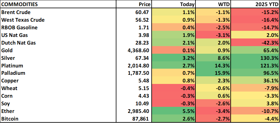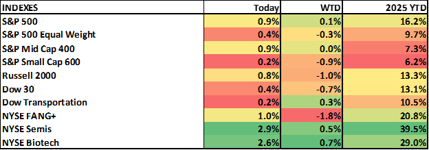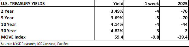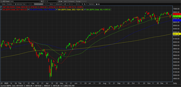 Before traders and investors could put a bow on 2025, the overhang of the last Federal Reserve meeting of the year had to be addressed. That was accomplished last week, and it helped set the path to the end of the year and position things for beginning of 2026- at least until everything gets tossed around with a new Fed chair. The Fed cut rates as expected and Doves got some stocking stuffers when Chair Powell wasn’t as hawkish as he could have been while kick-starting a new asset purchase program to help stabilize bank reserves. Equities rallied post-meeting and the day after, but sold off on Friday as the S&P fell 1% and the Russell 1.5%. For the week, the S&P 500 fell 0.6%, but the equal-weight index was the mirror image, gaining 0.7% while the Russell gained over 1% and reached an all-time high. A look under the hood showed growth and techy Mega Cap names sold-off, exemplified by post-earnings weakness in Oracle and Broadcom. Meanwhile sectors like Materials, Financials and the small caps easily outperformed. Since the Fed cut, the 2y yield is down ~6bp, but the 10y is flat and the 30y is up 6bp, steepening the treasury curve as future debt issuance, central bank independence, growth outlooks and inflation paths slam into each other.