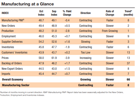 ISM Manufacturing came in below expectations at 48.7 down from 49.1 last month. The underlying metrics weren’t terrible with an improvement in new orders and employment while prices moderated. However, the comments section is pretty gloomy. Susan Spence, Chair of the ISM Manufacturing Business Survey Committee noted, “For every positive comment about new orders, there were 1.7 comments expressing concern about near-term demand, driven primarily by tariff costs and uncertainty.”