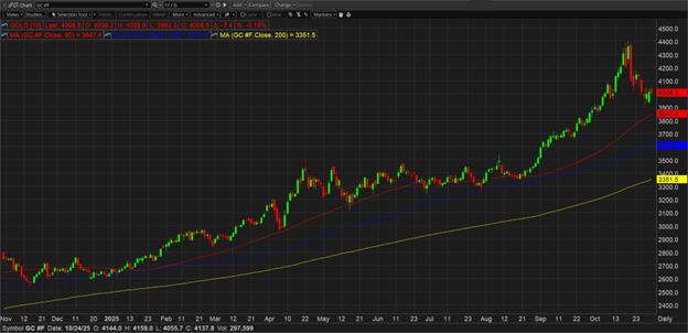 After some conversations over that weekend the tone around China/US relations softened and set the stage for the long-awaited meeting between Presidents Trump and Xi Jinping, which took place this week (more below). Earnings season got off to a good start with very strong reports from money center banks buoyed by a pickup in capital market and investment banking activity while commentary about the macro environment and consumer spending was cautiously optimistic. The credit concerns briefly moved to the forefront after JP Morgan CEO’s “cockroaches” comment was quickly followed by some new charge-offs at regional banks. Ahead of the open on Friday 10/17 before a slew of regional bank earnings, futures came under significant pressure retesting the previous week’s lows but there were no new red flags and investors quickly deemed these issues to be idiosyncratic.