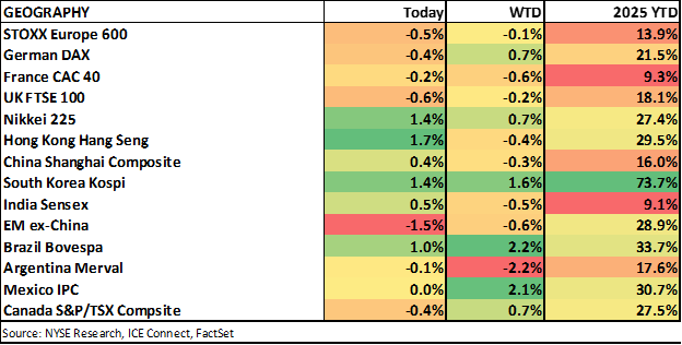 Philly Fed President Paulson, who will be a voter in 2026, said she was a little more concerned about labor market weakness than upside inflation risk, but also underscored that “it is really, really important that we bring inflation all the way back to 2%.” Cleveland President Hammack, another 2026 voter, said she would prefer policy to be a little more restrictive than the current level.